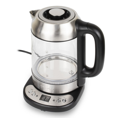 چای ساز دونالکس مدل DN-185 توان مصرفی بین 2200-1850 وات دارد. قسمت فلزی بر روی این دستگاه از جنس استیل ضدزنگ می باشد، همچنین فیلتر قوری این دستگاه نیز از جنس استیل ضدزنگ است.. ظرفیت کتری این دستگاه 1.7 لیتر و قوری آن 0.8 لیتر و جنس هر دور از شیشه مقاوم می باشد. شیشه هر کدام از این دو مدرج شده و به راحتی میتوانید به میزان دلخواه آنها را پر نمایید. چای ساز دونالکس مدل DN-185 دارای رینگ چراغ آبی رنگ می باشد که در هنگام جوس آمدن آب جلوه زیبایی به آن می بخشد. بعد از جوش آمدن آب نیز، دستگاه خاموش می شود و همچنین با استفاده از دکمه های این دستگاه می توانید دما را کم یا زیاد کنید و یا از قابلیت گرم نگهدارنده آن استفاده کنید. قابل ذکر است که دستگاه به طور خودکار پس از 2 ساعت کامل خاموش می شود. همچنین اگر بدون آب دستگاه را روشن کنید، دستگاه به طور خودکار خاموش شده و از خطرات احتمالی جلوگیری خواهد شد.